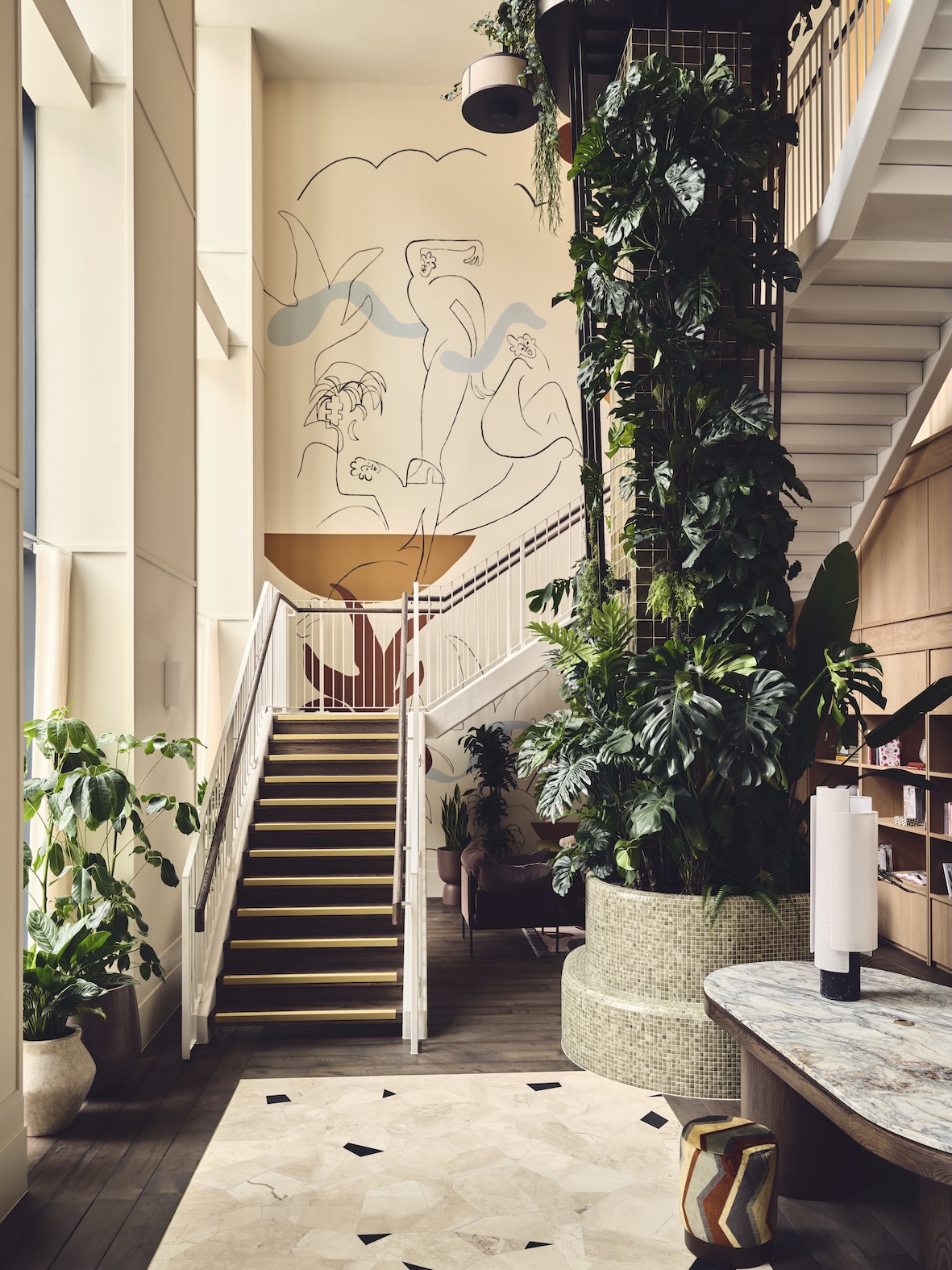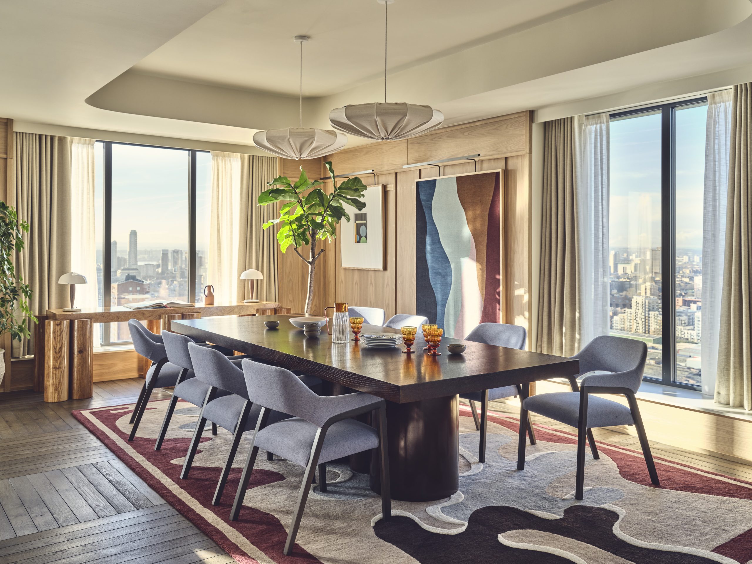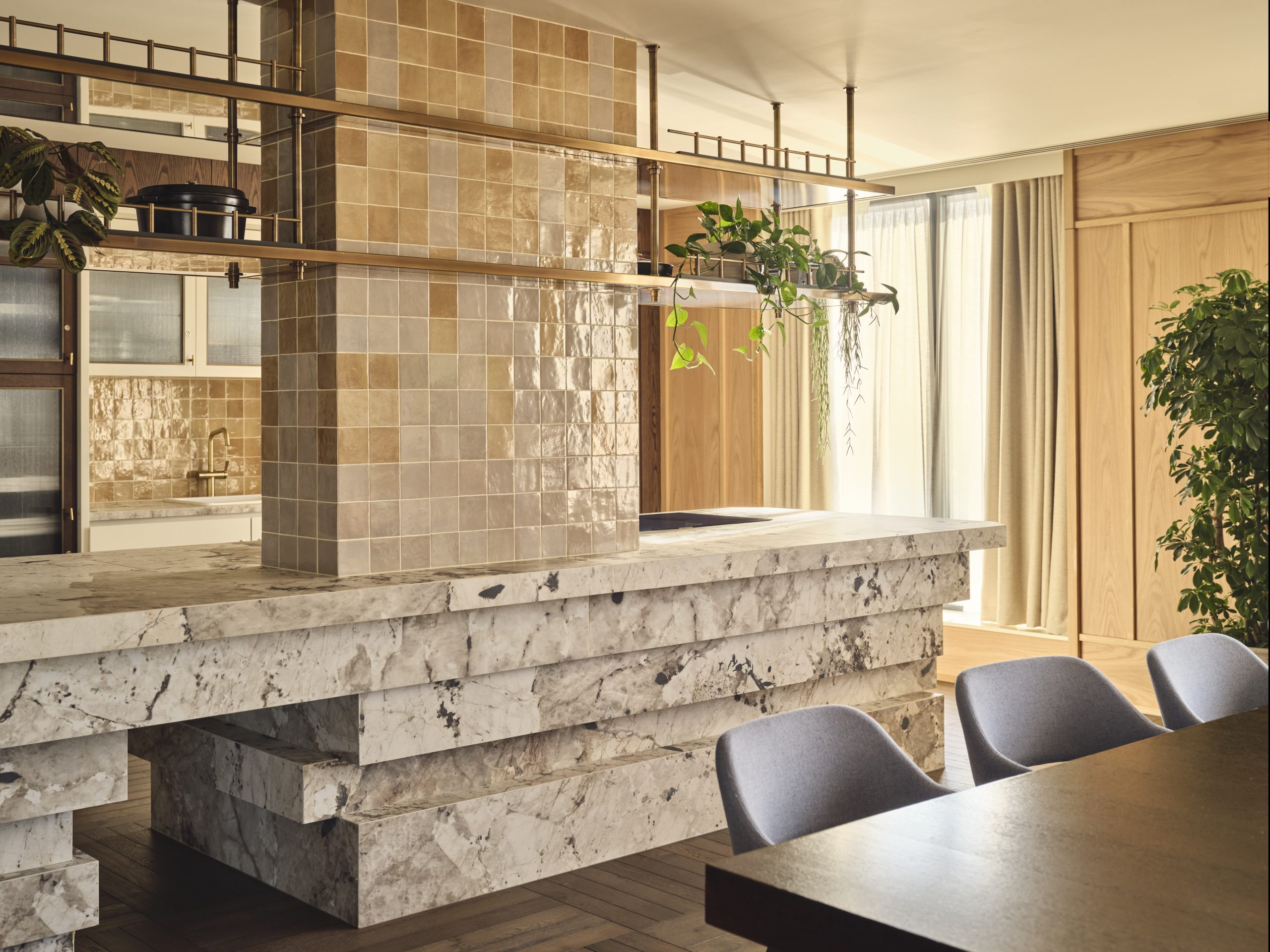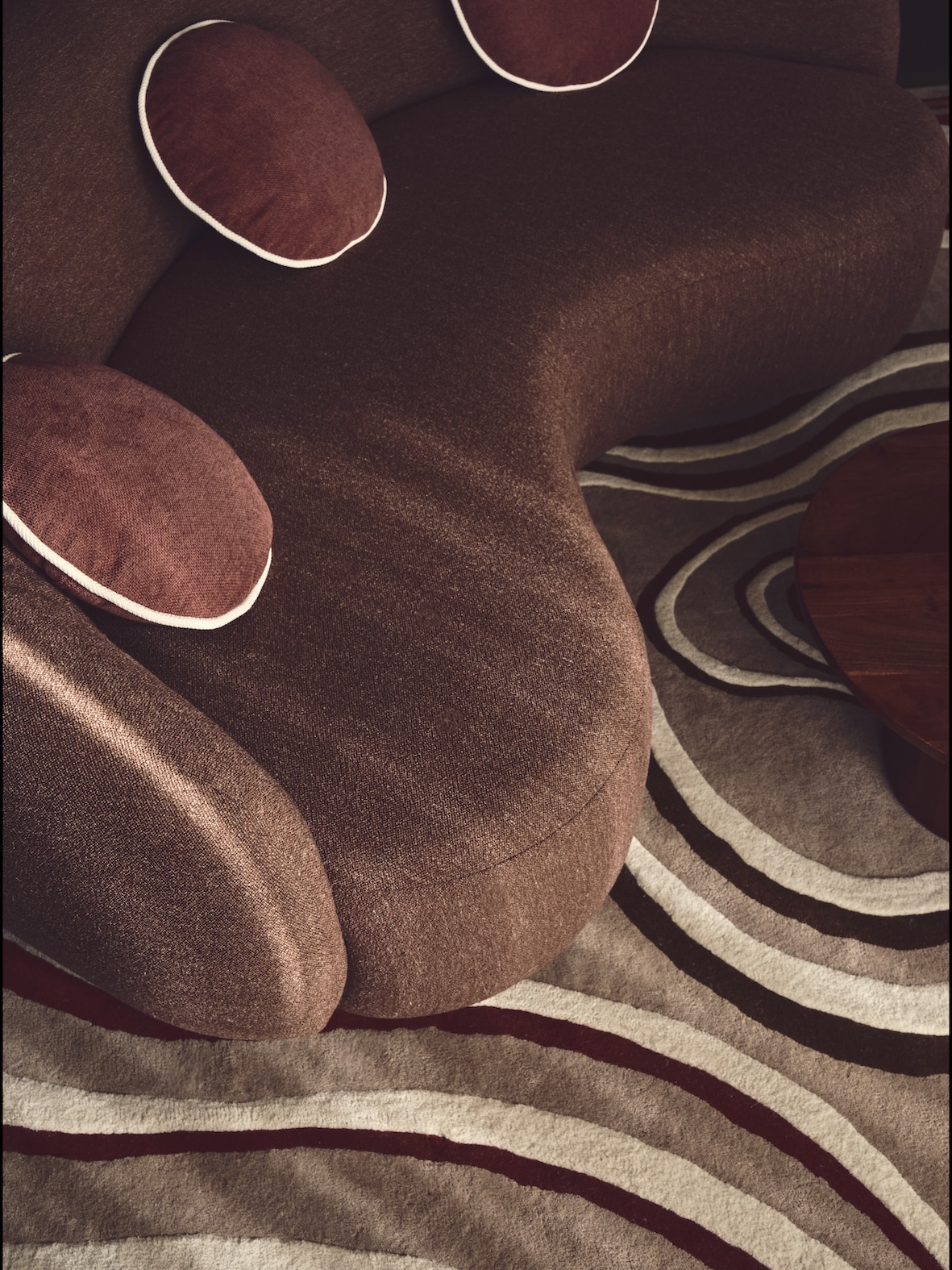 La visión de ADC & Tuneu para el edificio celebra la honestidad material, la presencia de vegetación y la interacción social. El diseño interior se inspira en la herencia brutalista de Londres, especialmente en el Barbican y sus terrazas ajardinadas. Una paleta terrosa de materiales naturales, panelados de madera y tonos neutros suaves aporta calidez a la arquitectura, mientras que asientos de perfil bajo, sofás curvos icónicos y alfombras y textiles a medida evocan la atmósfera de un club privado dentro de un entorno residencial. Cortinajes cuidadosamente seleccionados, luz natural y una abundante vegetación dotan a los interiores de una sofisticación serena, dando lugar a una expresión contemporánea de la vivienda, tranquila y arraigada.