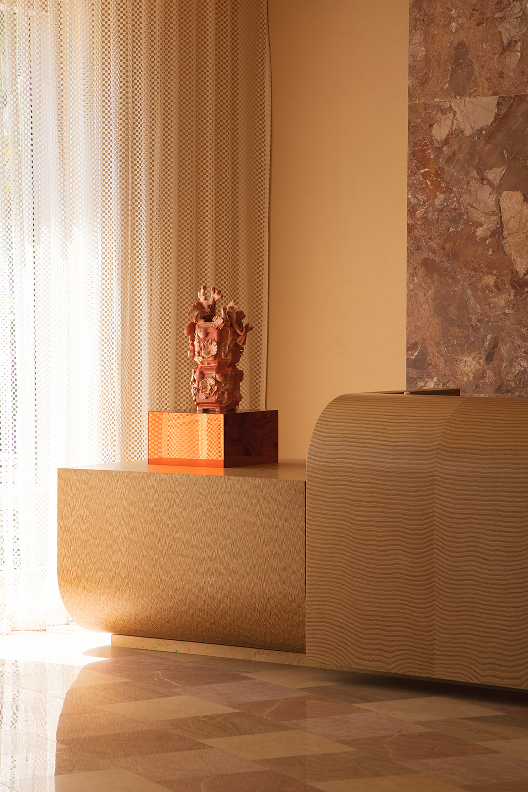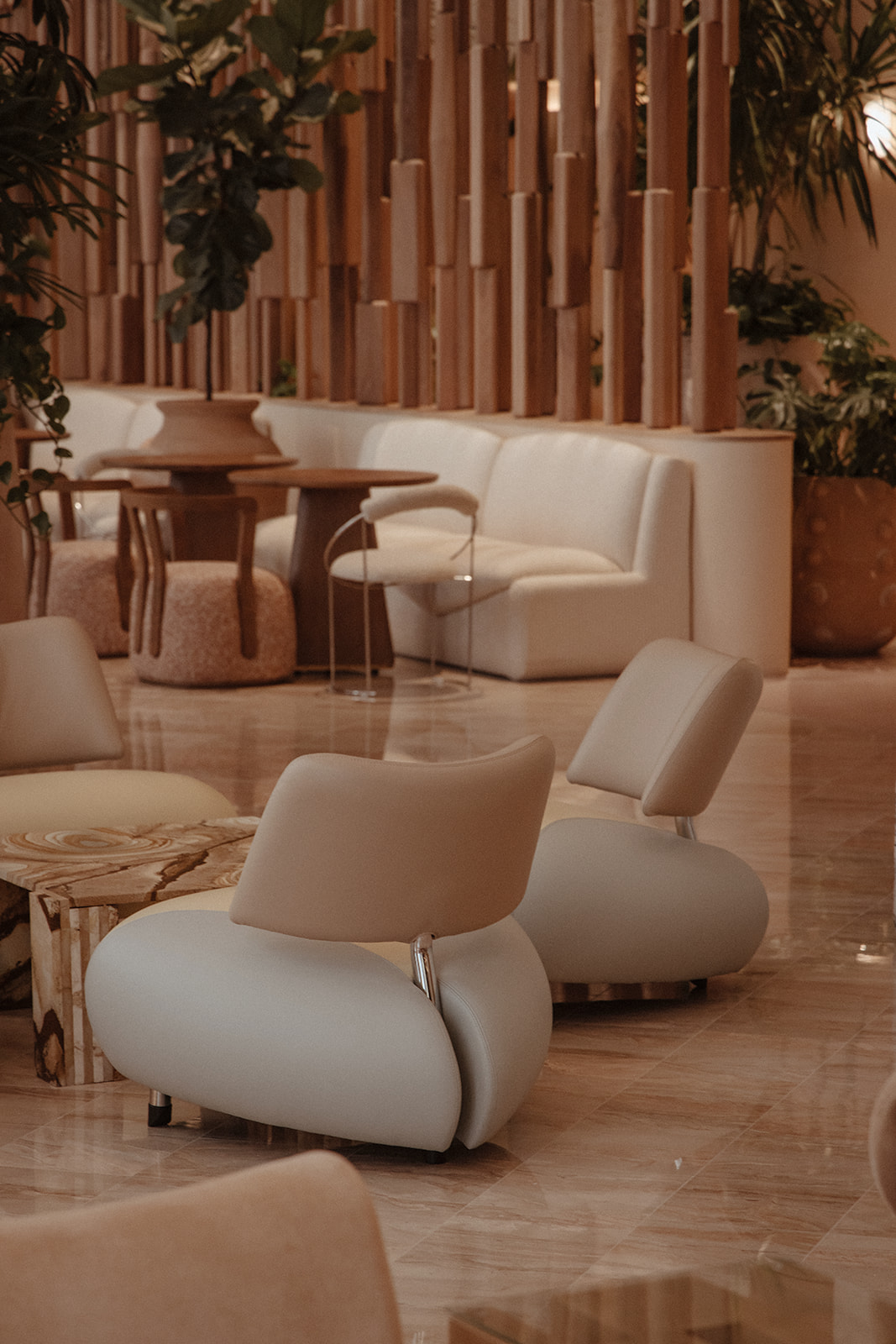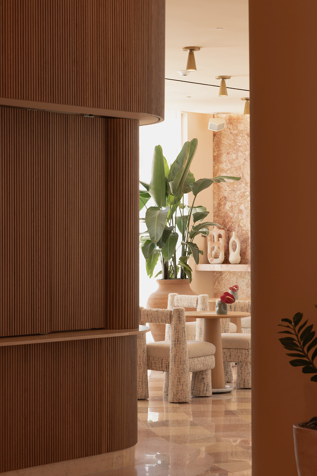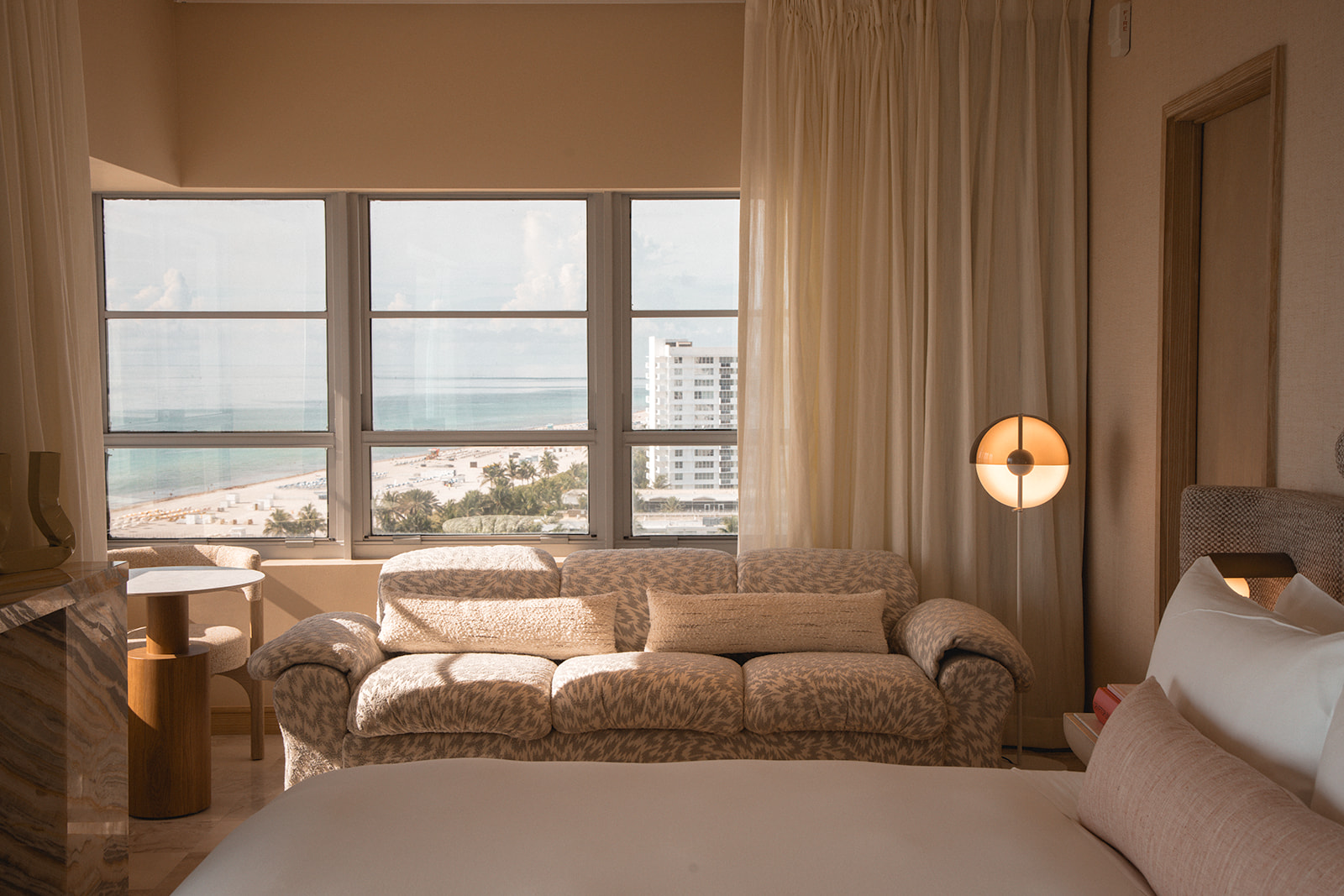 ADC & Tuneu han reinterpretado el hotel con una elegancia serena y un profundo respeto por la artesanía. Inspirado en el paisaje costero de Miami y en el optimismo de la era Art Déco, el diseño combina tejidos a medida, mármoles en tonos pastel, maderas naturales cálidas y una exuberante vegetación para crear una paleta a la vez refinada y expresiva. Una excepcional colección de arte completa el conjunto, celebrando la vitalidad cultural de la ciudad y uniendo el espíritu de mediados de siglo con una sensibilidad contemporánea; una continuación atemporal del glamour duradero de Miami.