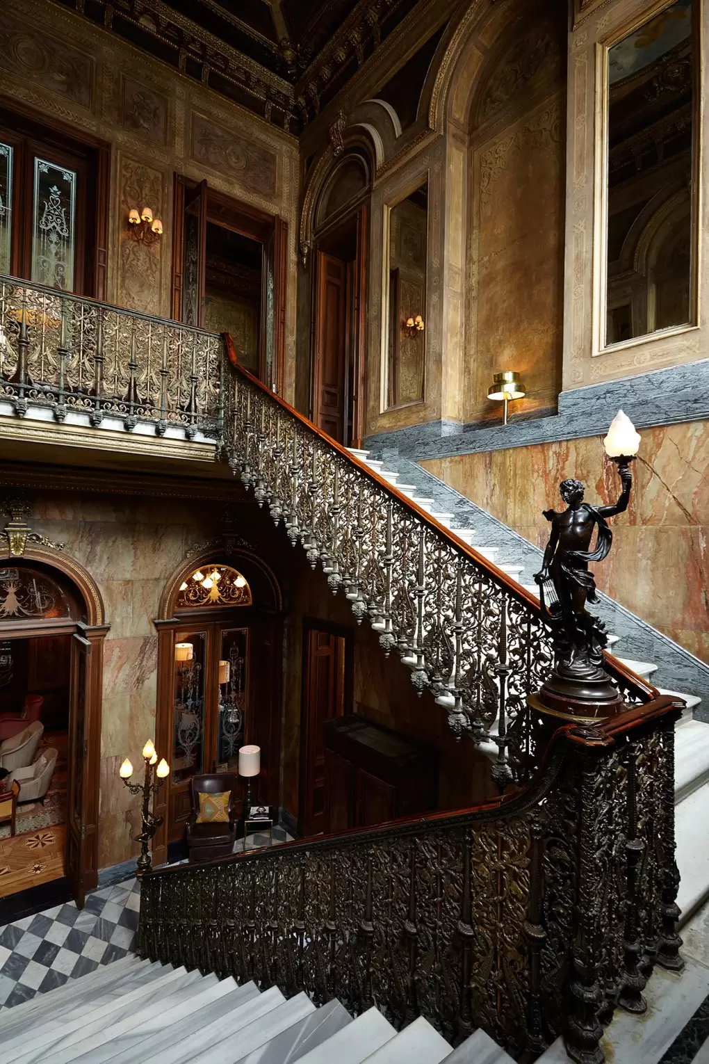 Soho House Istanbul rinde homenaje al encanto atemporal de su histórico entorno del siglo XIX en el Palazzo Corpi, construido en 1873 en el corazón del barrio de Beyoğlu. Encargado originalmente por un armador genovés y posteriormente ocupado por la Embajada de Estados Unidos, el palazzo conserva numerosos elementos originales, como suelos de mármol de Carrara, chimeneas ornamentadas y majestuosas puertas de palisandro. El proyecto supuso la rehabilitación integral del edificio como hotel de 87 habitaciones y club privado, incluyendo un hammam turco tradicional, cuatro restaurantes, un amplio gimnasio con ring de boxeo, sala de proyecciones y una piscina en la azotea con vistas a la ciudad.