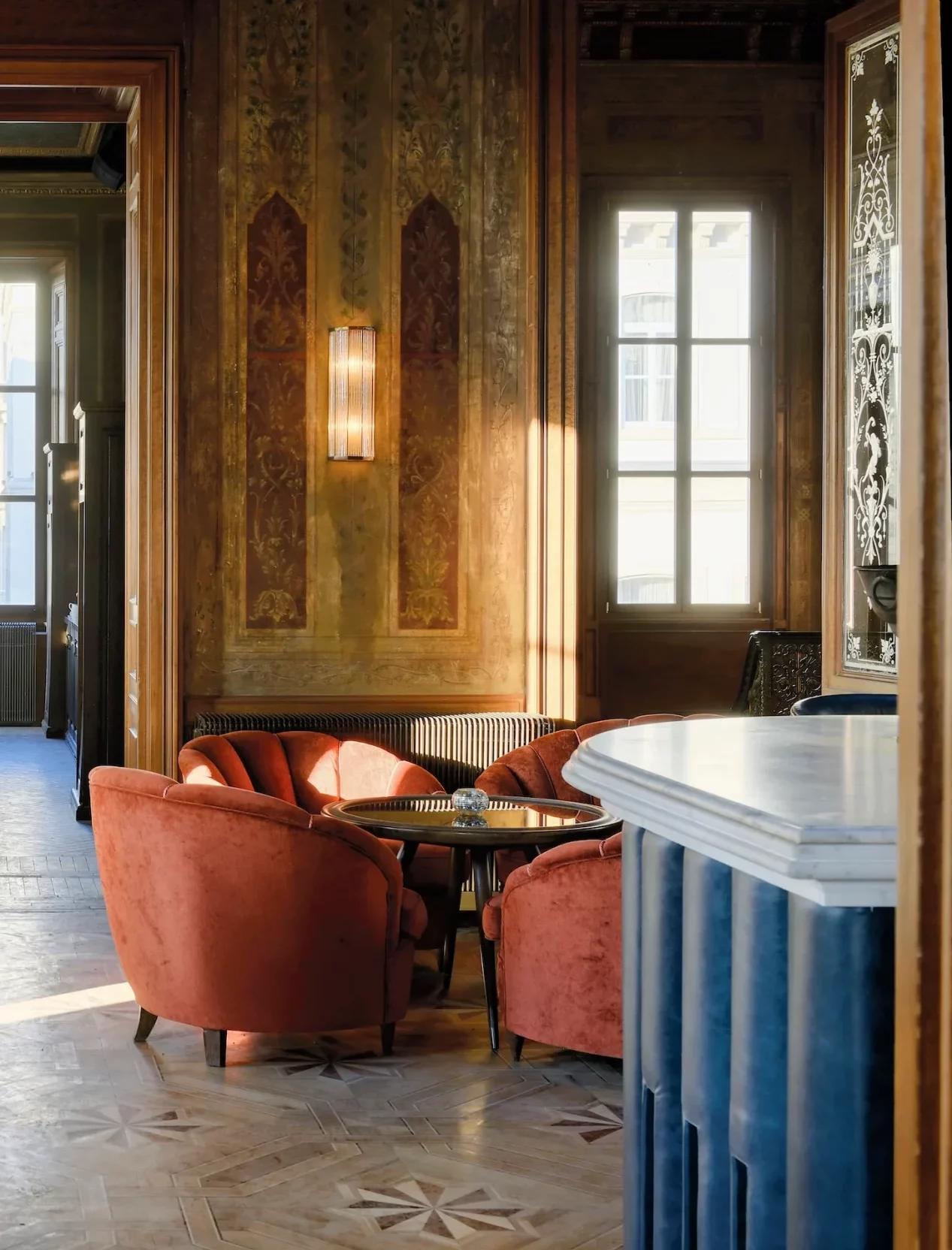 El diseño respeta la herencia neoclásica del edificio al tiempo que incorpora capas de artesanía local y confort contemporáneo. Azulejos hechos a mano, textiles kilim y ricos detalles en latón conviven con frescos restaurados y altos ventanales con contraventanas, generando un diálogo entre influencias otomanas y europeas. Una de las transformaciones más ambiciosas de Soho House, el resultado es refinado y a la vez relajado, profundamente arraigado en su contexto y expresivo en cada detalle.