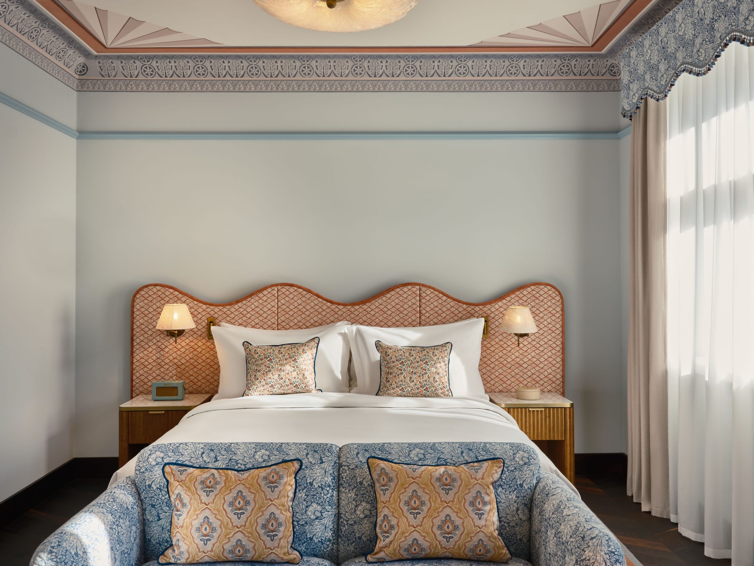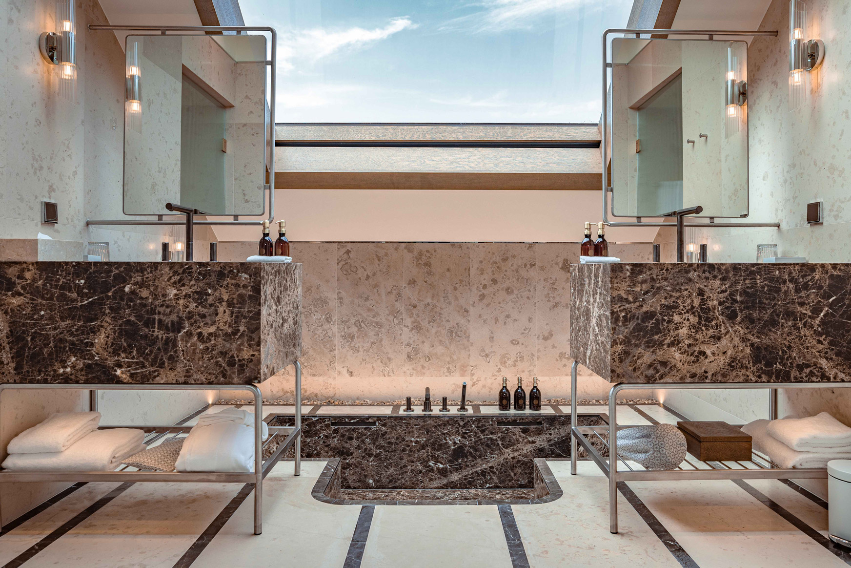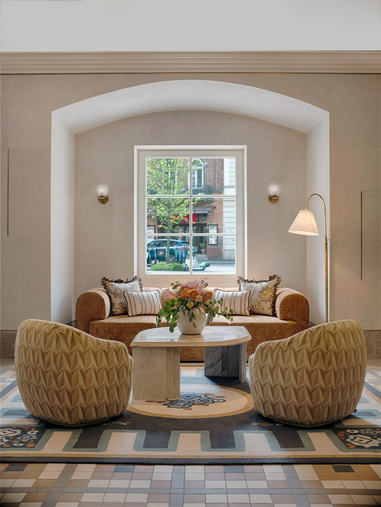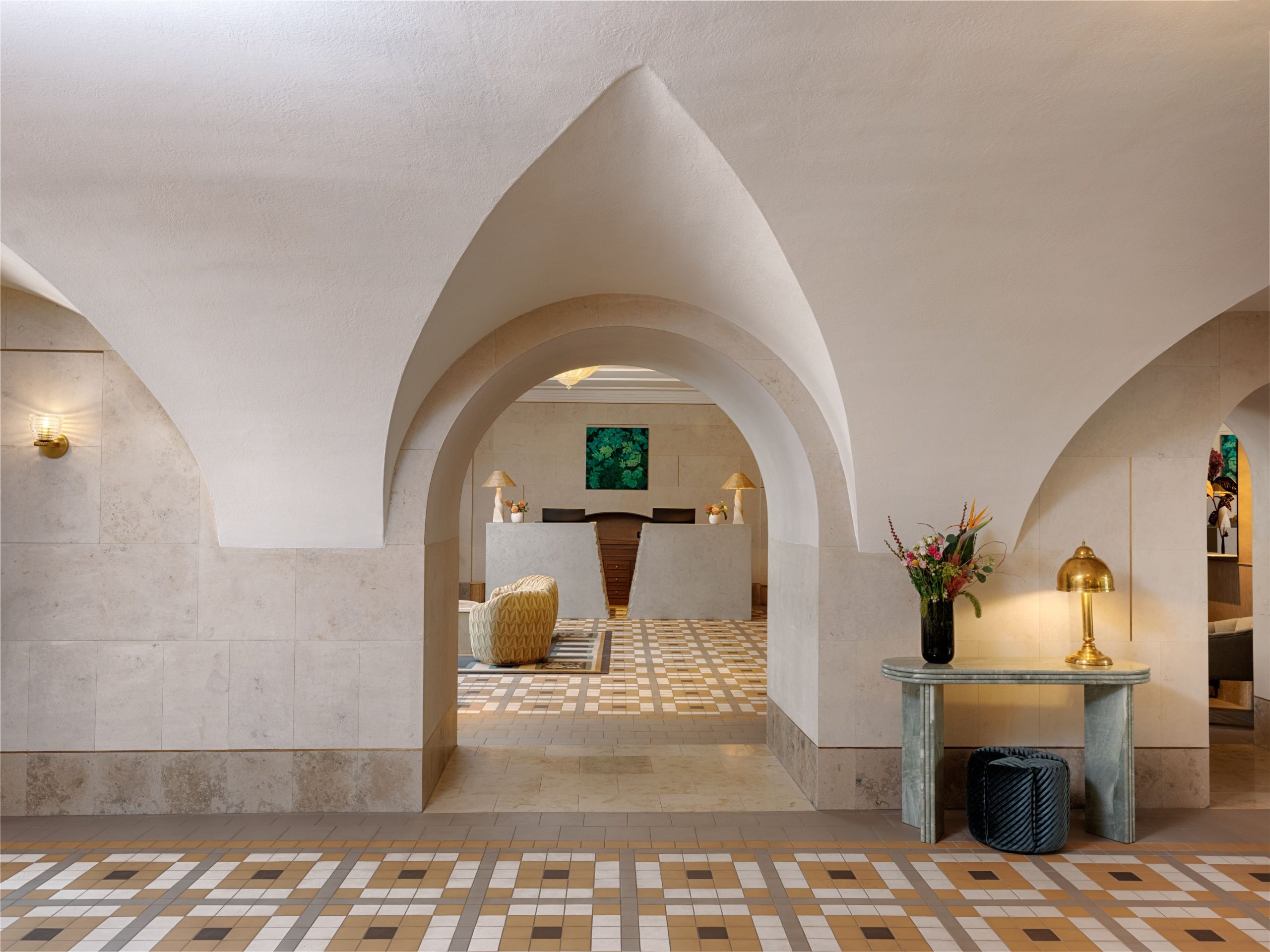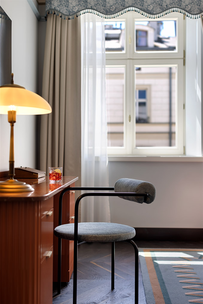 Arraigado en el contexto cultural de la ciudad, el proyecto entrelaza historia, mito y leyenda en una narrativa en capas donde cada espacio cuenta una historia. En colaboración con especialistas locales en conservación, el estudio supervisó la restauración de frescos y bóvedas que revelan el pasado sagrado del edificio. En el restaurante, el mármol rosa sal evoca las cercanas minas de sal de Wieliczka, mientras que el mobiliario a medida y una colección de arte comisariada por Francesca Gavin completan el conjunto. El resultado equilibra riqueza narrativa, artesanía y conservación patrimonial con una hospitalidad contemporánea: un hotel atemporal profundamente conectado con el espíritu de Cracovia.